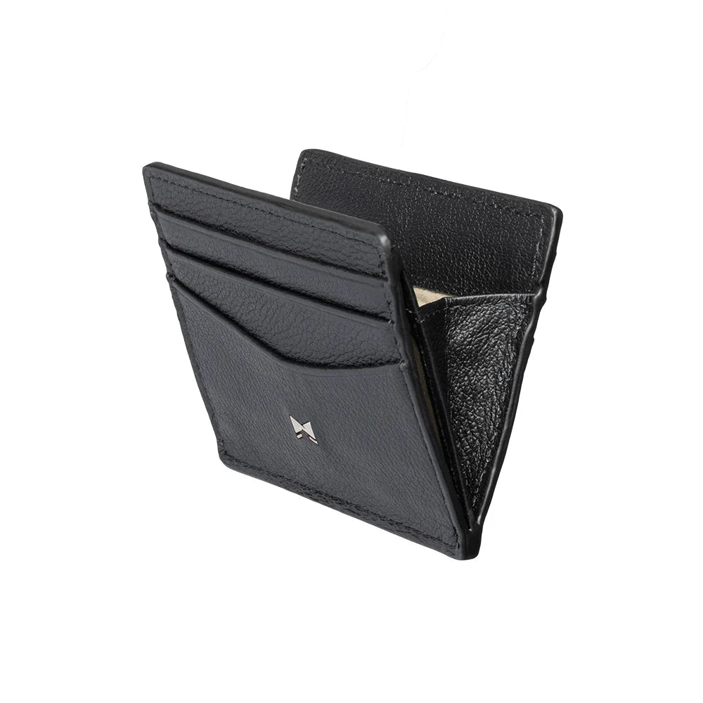 Met een dikte van slechts 1,1 centimeter behoort deze kaarthouder van Gentlemen’s tot de dunste portemonnees ter wereld. Het innovatieve, gepatenteerde vouw- en sluitmechanisme maakt het mogelijk om ondanks het slanke profiel verrassend veel mee te nemen, zonder in te leveren op comfort of uitstraling.
