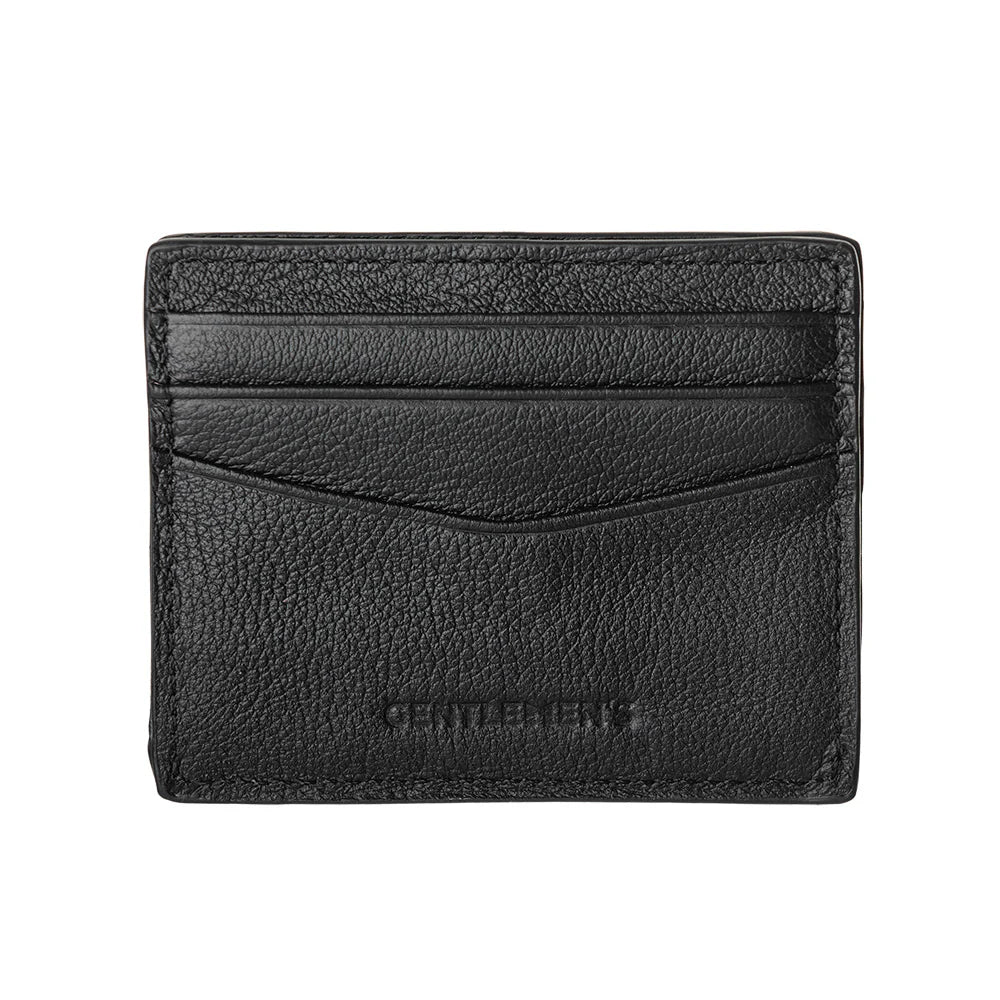 Voorzijde van de Gentlemens leren kaarthouder in het zwart #kleur_zwart