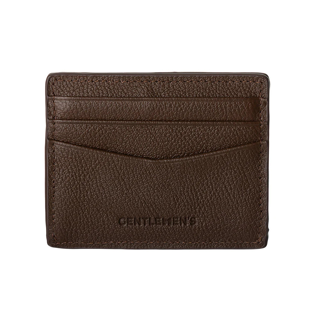 Voorkant van de Gentlemens leren kaarthouder in het donkerbruin #kleur_donkerbruin