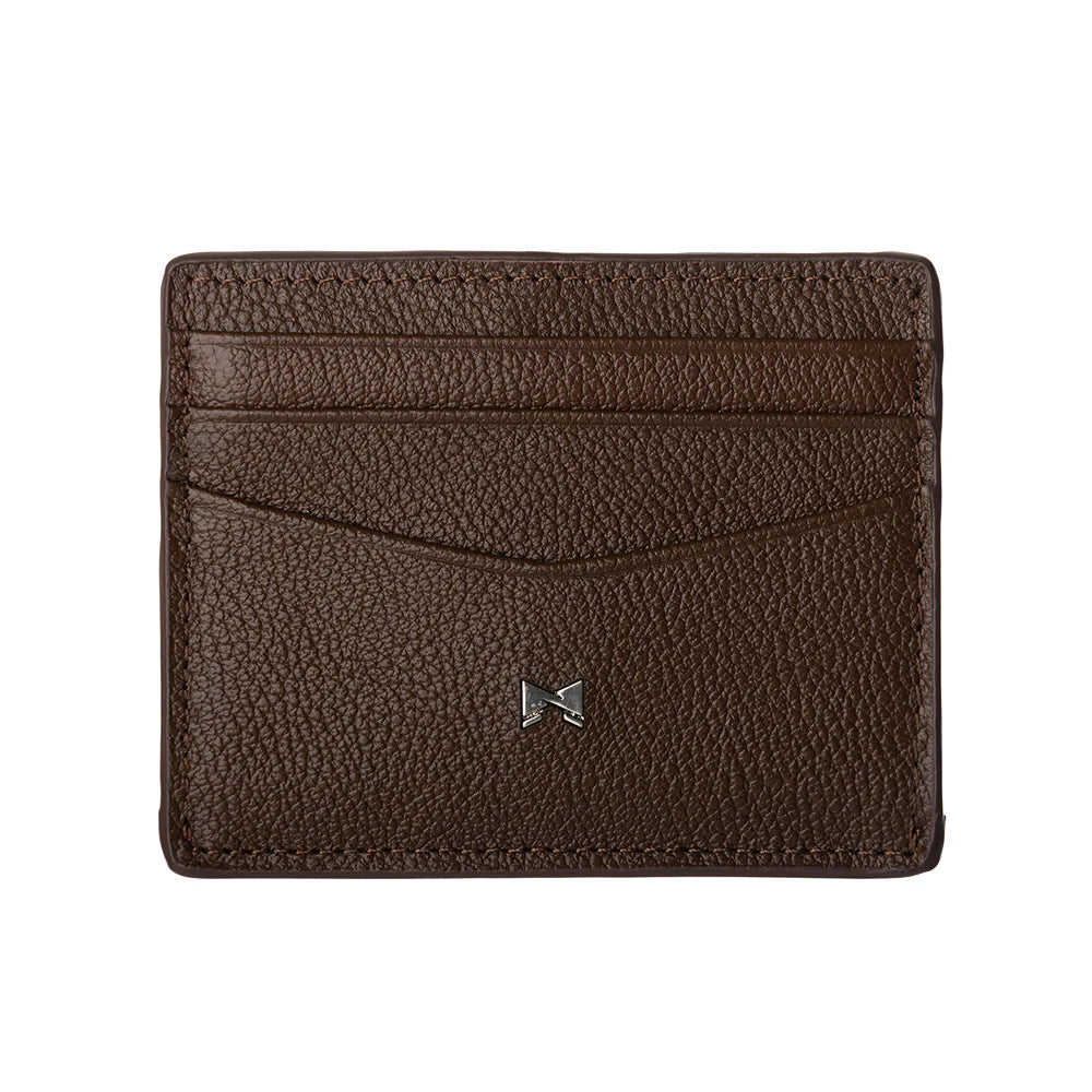 Voorzijde van de Gentlemens leren kaarthouder in het donkerbruin #kleur_donkerbruin