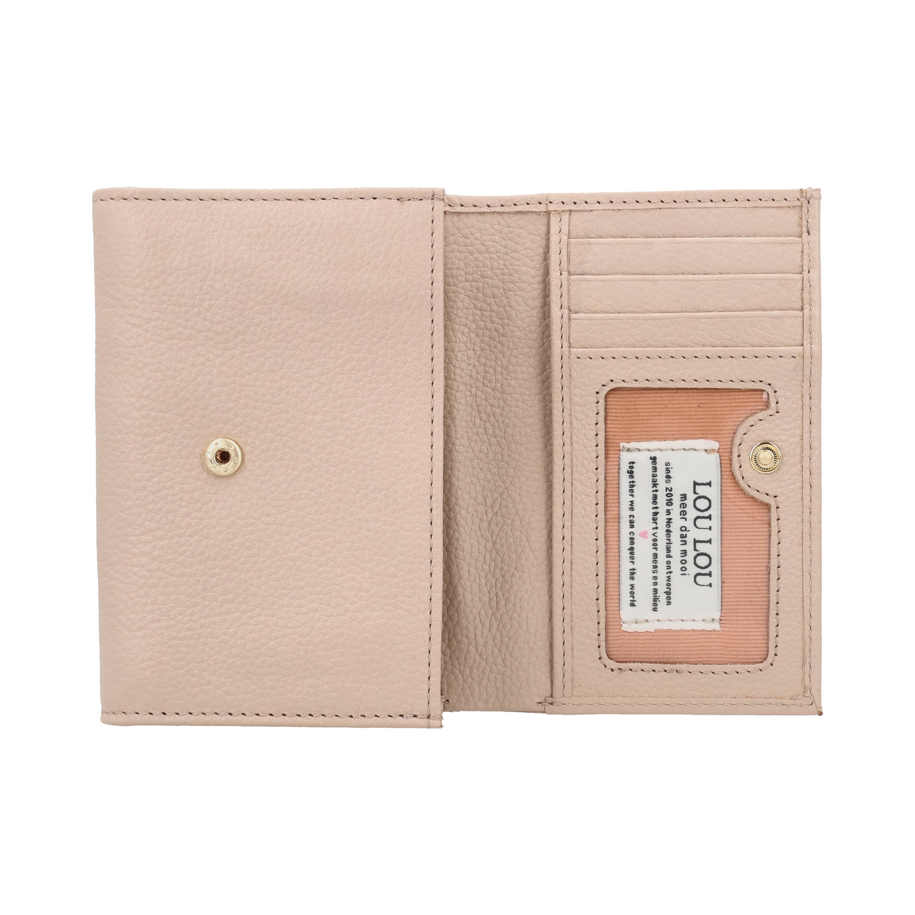Voorzijde van de LouLou Perie Fleur portemonnee in de kleur cashmere #kleur_cashmere