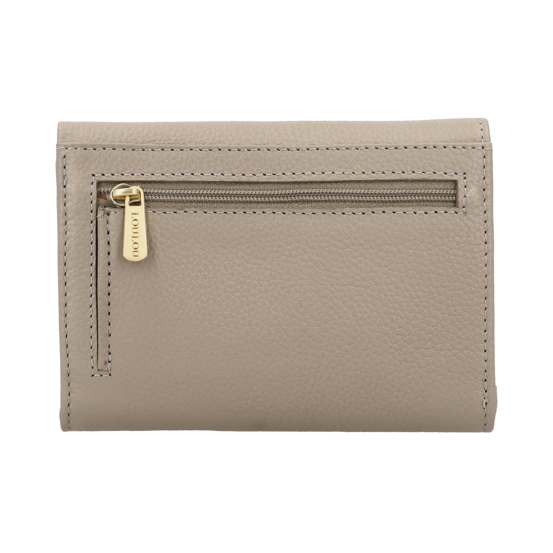 Achterkant van de LouLou Perie Fleur portemonnee in de kleur taupe #kleur_taupe