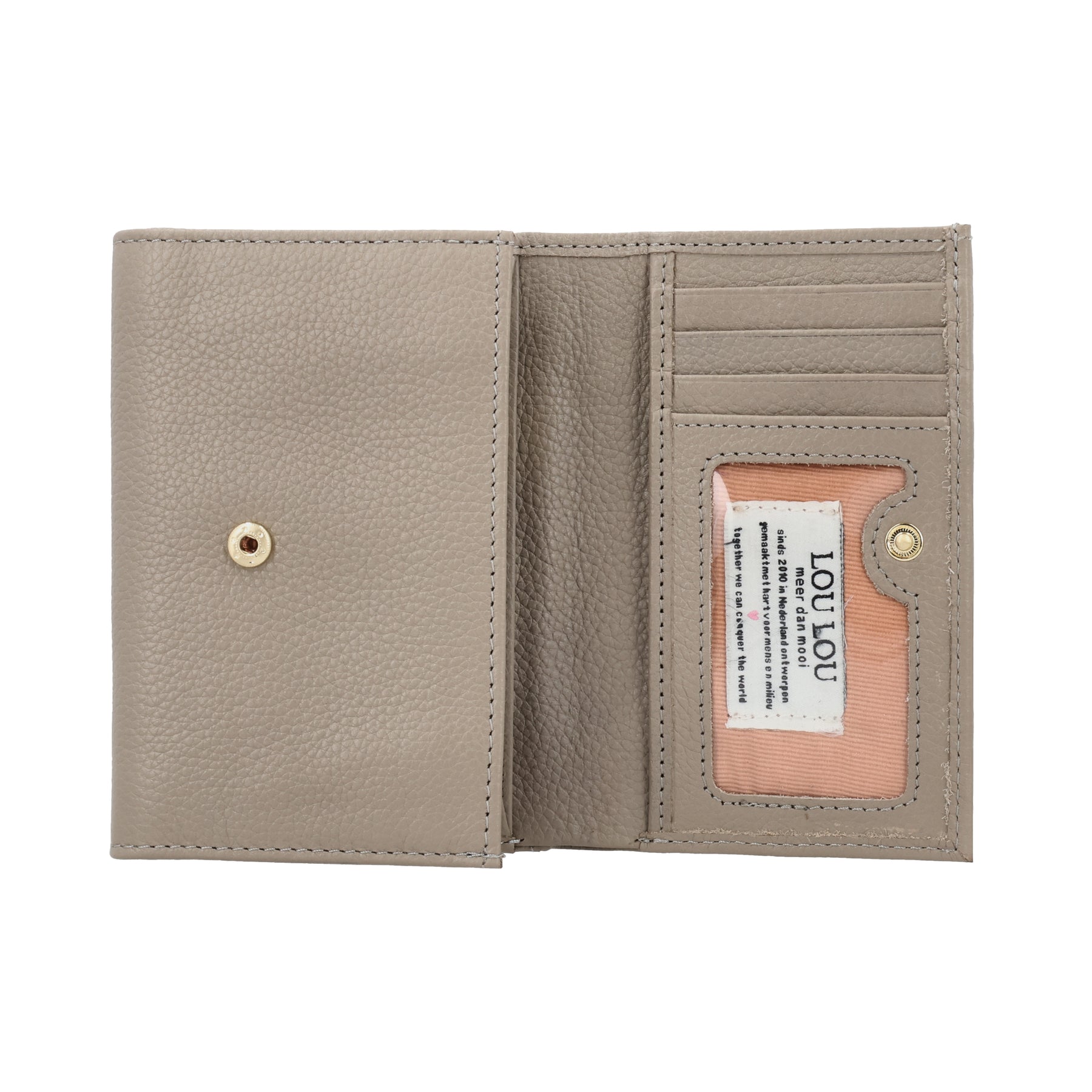 Voorzijde van de LouLou Perie Fleur portemonnee in de kleur taupe #kleur_taupe
