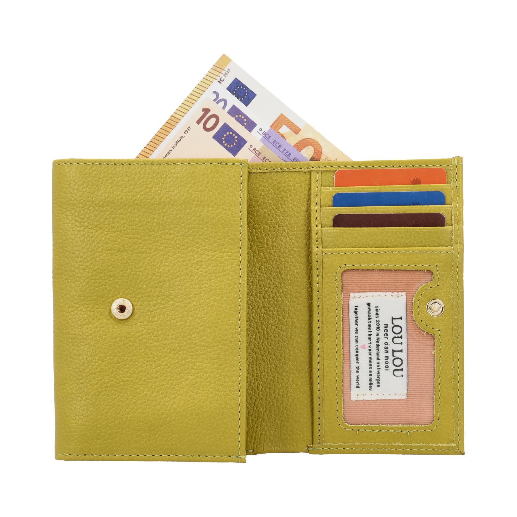 Voorzijde van de LouLou Perie Fleur portemonnee in de kleur cress-green #kleur_cress-green